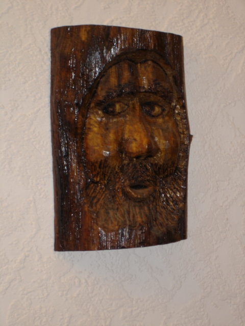 Ich habe den Kopf aus einer 20 m hohen Pappel in einer Höhe von etwa 3 m aus dem Baum herausgearbeitet.
